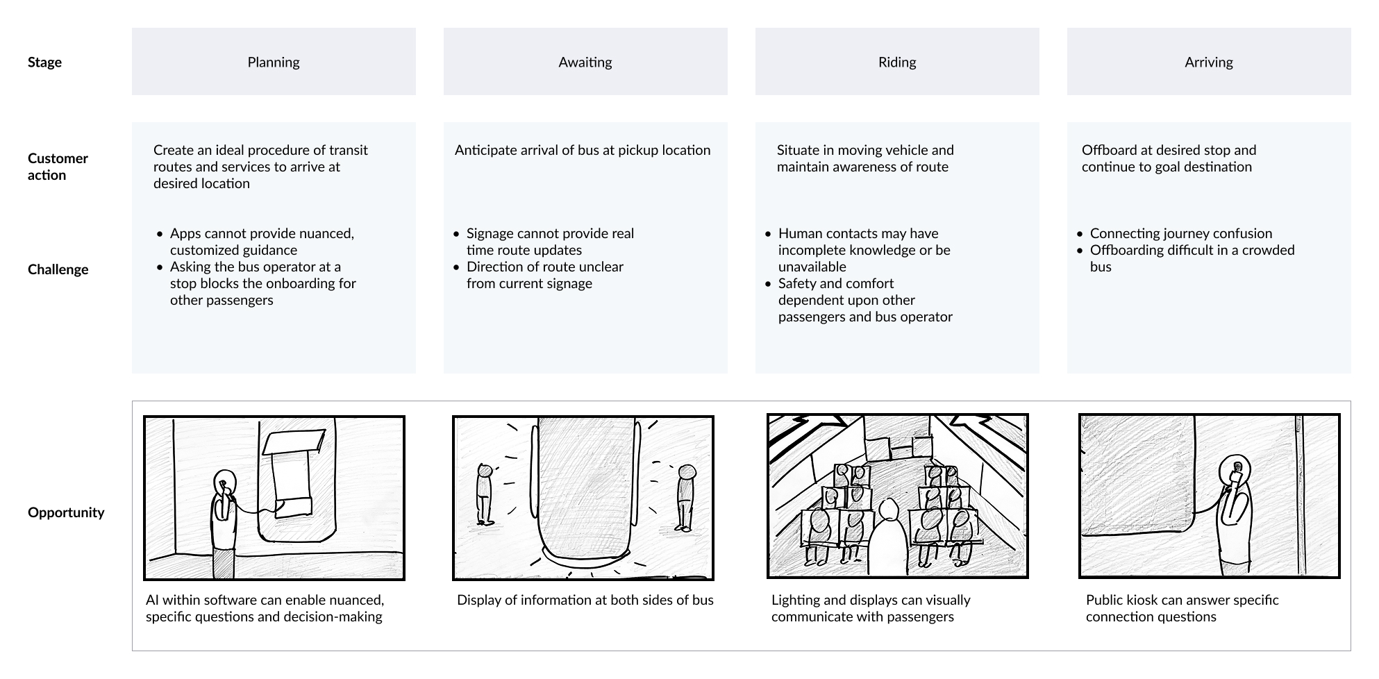 - Most prominent challenge areas were: seating, space, route efficiency, rider management, trip planning, efficiency, information & interaction, and comfort.